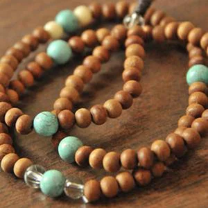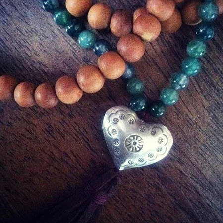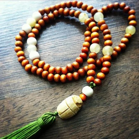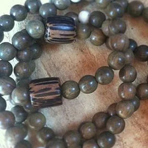 Sandalwood is a wood that is traditionally used for malas. It helps to realign mind, body and spirit. It also assists grounding and to be in the present, finding spiritual purpose, clarifying the mind, and it helps through periods of fear. In India, Sandalwood is given divine status and the fragrance of this wood is said to be one of the most pleasing to the Gods and is considered calming and soothing. Sandalwood promotes humility and focuses the mind to aid in meditation, providing clarity and inner peace.
