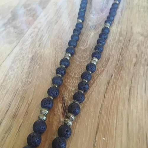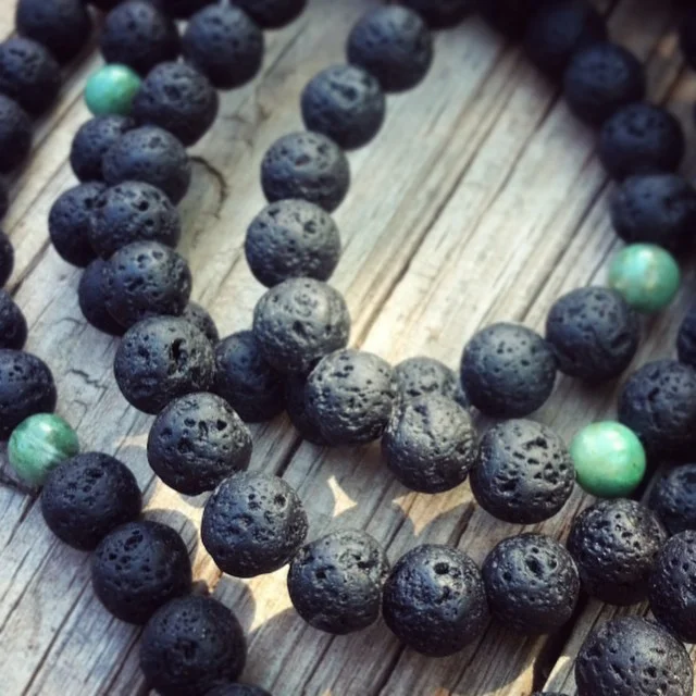 Lava Rock has been through intense transformation through the exposure to extreme elemental forces, thus sharing an incredible endurance. It is also grounding and vitalizing. Lava Rock lends strength and courage, and provides stability while going through changes in one's life. The Lava Rock carries a very powerful message - that of perfect imperfections - with each and every bead appearing different and unique in both size and shape, each unique with its own scars and stories, yet beautiful - and perfect - as is. The message is to move beyond the story and appearances, to drop it all, and to dare to simply remain as we are - to just BE - perfect with all imperfections.