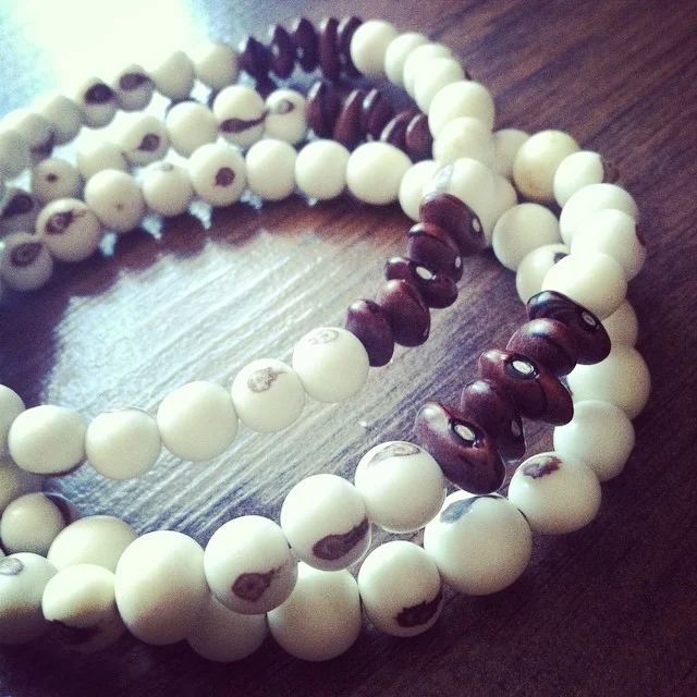 Seeds and Beans hold a lot of energy, to say the least, and they are alive - thus also a symbol for the latent life force we all hold within awaiting to pour through. They symbolize the pure potential, and the ever-present latent life force, held within each being. Seeds symbolize the potential for rebirth, in each and every situation, in each and every breath. They hold potential, as do we. This is the reason we use Seeds on our malas, as a reminder to consciously stay open and receptive, to channel the Life that is constantly moving through. The Seeds aim to remind the wearer of their innate potential and magical life force.